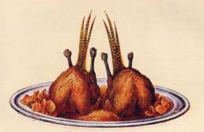 pheasant, woodcock, lark and snipe. Meat was roasted on great spits in the